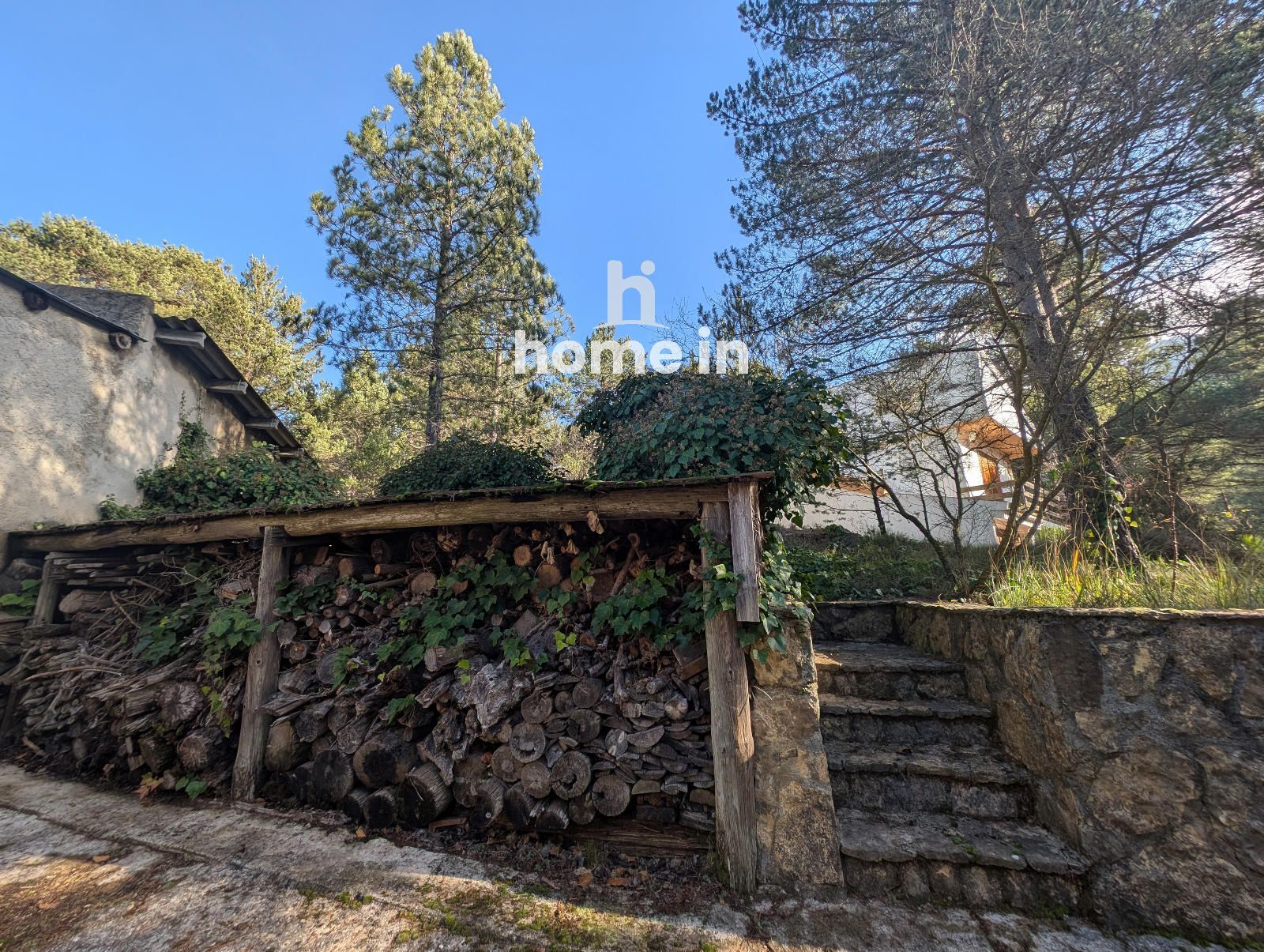 La propriété dispose de 119 m² de logement et d’un magasin indépendant de 80 m², le tout sur une parcelle de 4.179 m² avec pins et arbres millénaires.